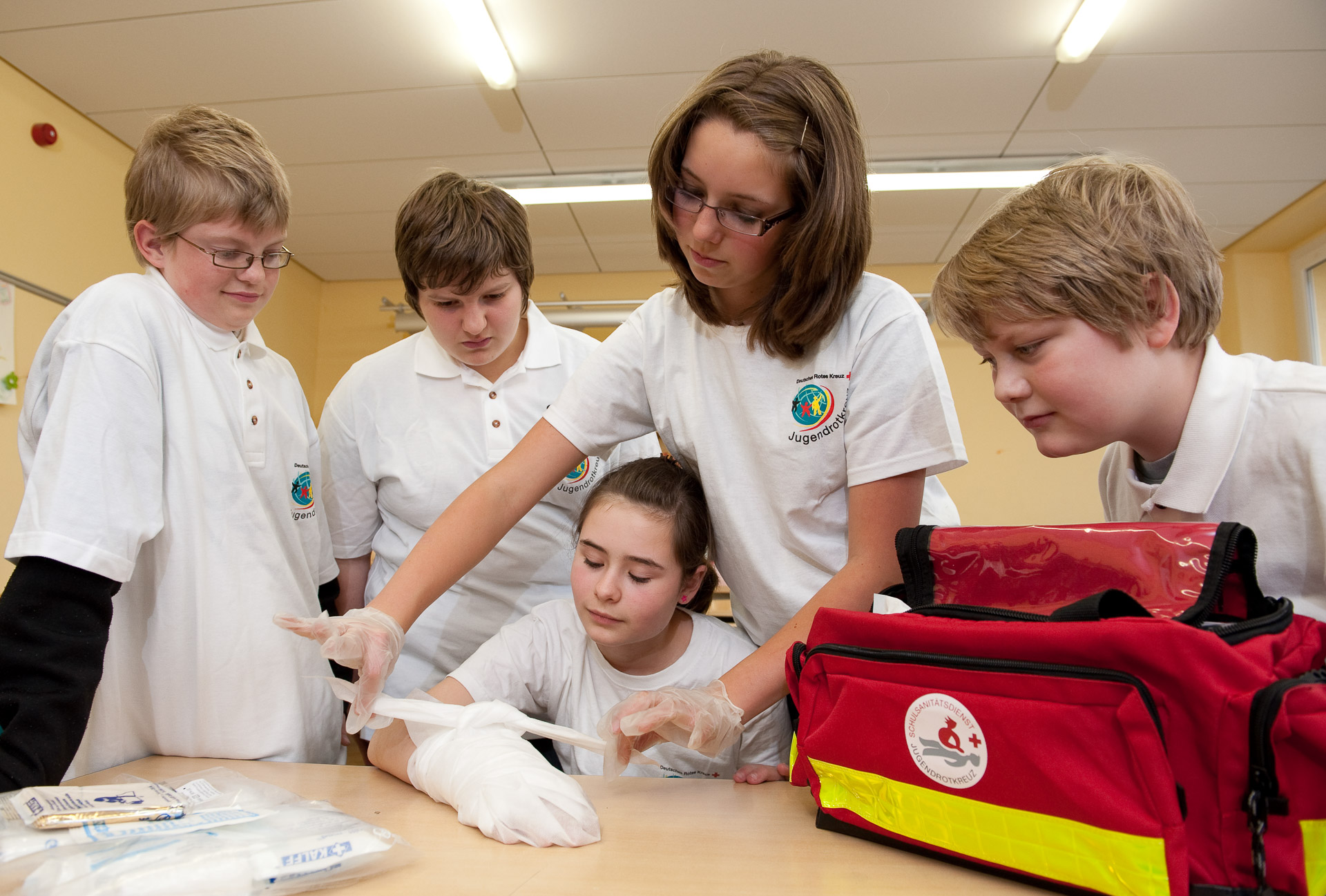 Schulsanitätsdienst des Jugendrotkreuzes in Sachsen.
